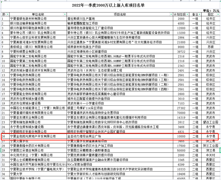 不过,近日小编在银川人民政府网站看到了一则《关于开展投资项目统计情况调研服务的通知》,通知中公布了2022年一季度2000万以上新入库项目名单,其中金圣动力港综合商业广场引起了小编的注意。