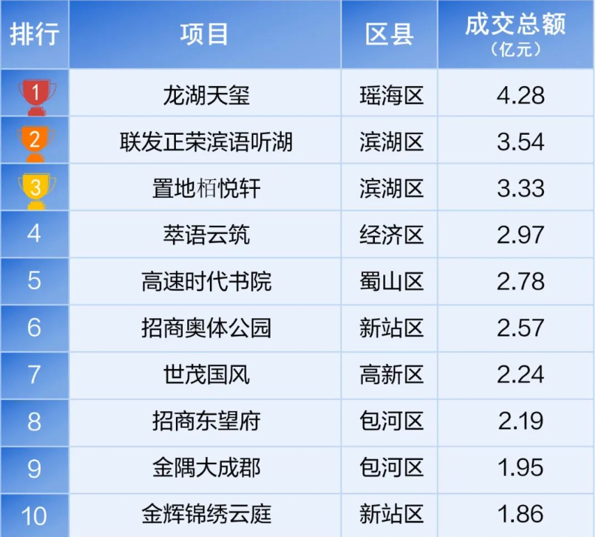 2022年3月合肥楼盘销售金额TOP10 来源:金刚石房地产云数据