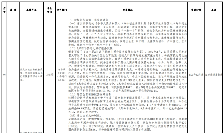 具体任务:落实三孩生育配套政策,争取实施婴幼儿托育健康管理中心项目。