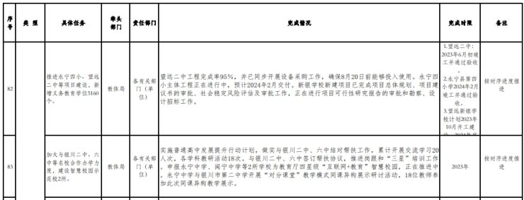 具体任务:推进永宁四小、望远二中等项目建设,新增义务教育学位5160个。