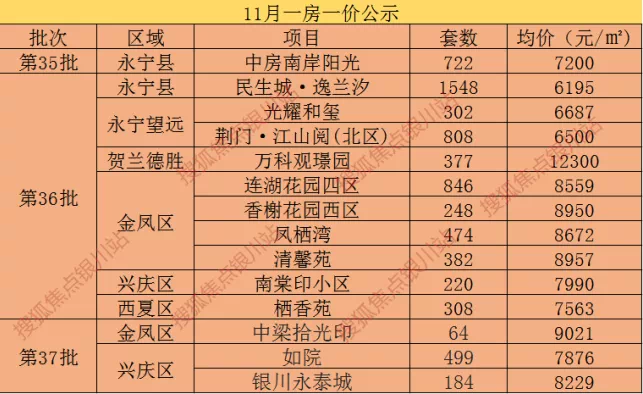 按银川一房一价信息备案要求,11月银川共有14个盘通过评估,释放“一房一价”房源信息公示详情,入市房源共6982套,均价在6195-12300元/㎡。