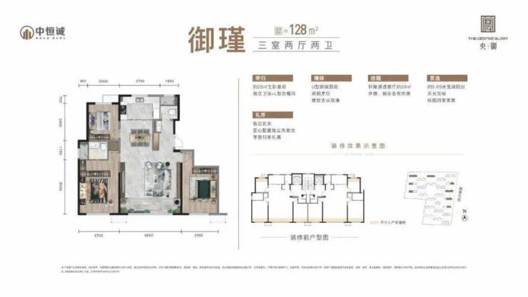 它的所有户型都是户型方正、南北通透、动静分离的设计,在细节做到入户玄关、南向宽景阳台设计,减少空间浪费。【央御】将产品定位为建面约119-143㎡的三居四居,充分满足人居不同需求。