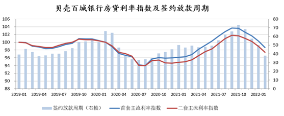 根据贝壳研究院发布的重点城市主流房贷利率数据,2022年2月,贝壳研究院监测的103个重点城市主流首套房贷款利率为5.47%,二套房贷款利率为5.75%,均较1月的房贷利率回落9个基点;2月平均放款周期为38天,较1月缩短12天。